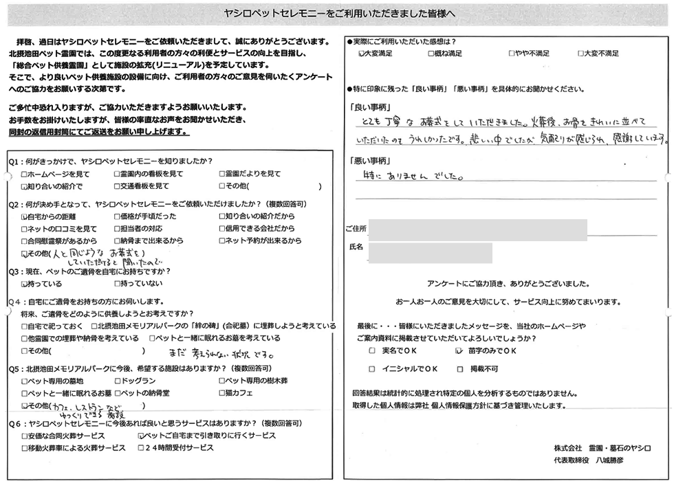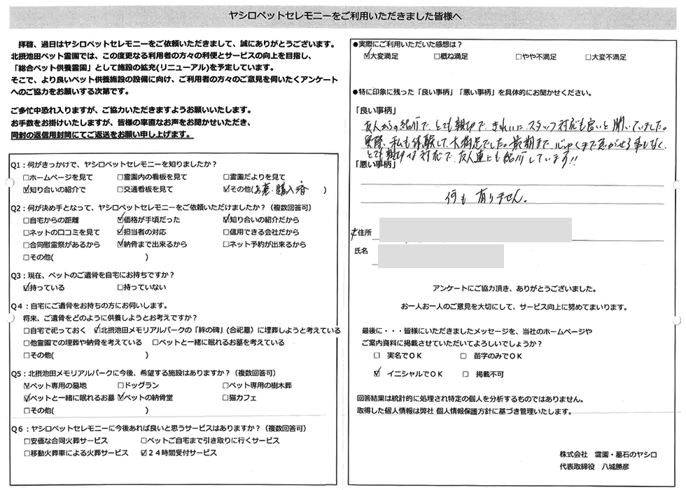 友人からの紹介で、とても親切で、きれいに、スタッフ対応も良いと聞いておりました。 実際、私も体験して大満足でした。最期まで心ゆくまで急がせる事もなく、とても親切な対応で、友人達にも紹介しています!! (大阪市 T様)