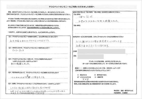 家族全員が納得でき、できること全てをしたと自信が持てました。