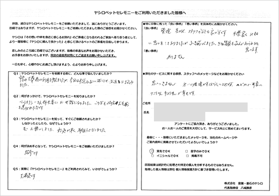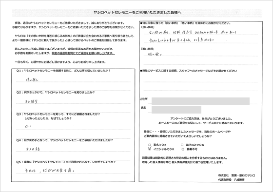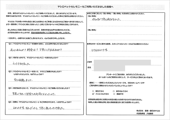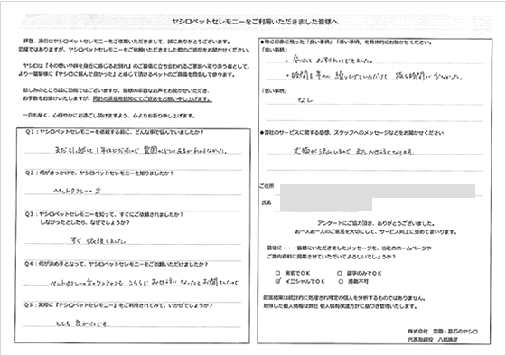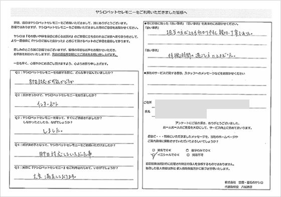 2年前にセレモニーを利用されたペットタクシーさんから紹介されました。