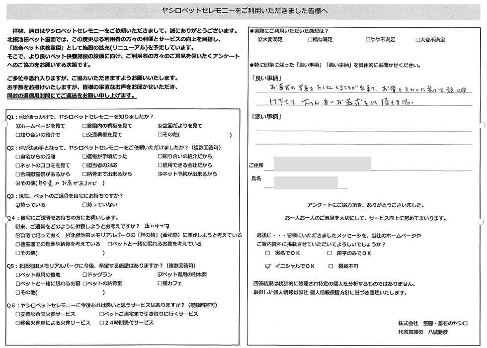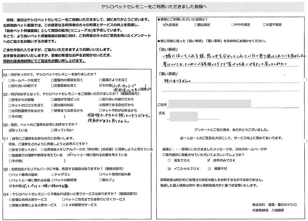本当に良くして頂き、愛犬の最後を見送りできました。ありがとうございます。