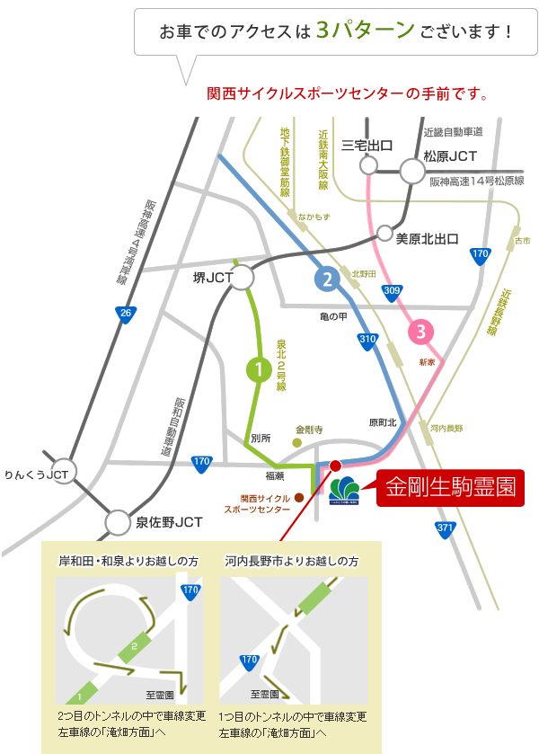 堺泉北有料道路 堺JCTを降りていただき、関西サイクルスポーツセンターの前を通ります。