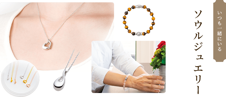 ご遺骨のかけらや遺灰を納められるジュエリーなど、手元供養グッズが多数揃っています。